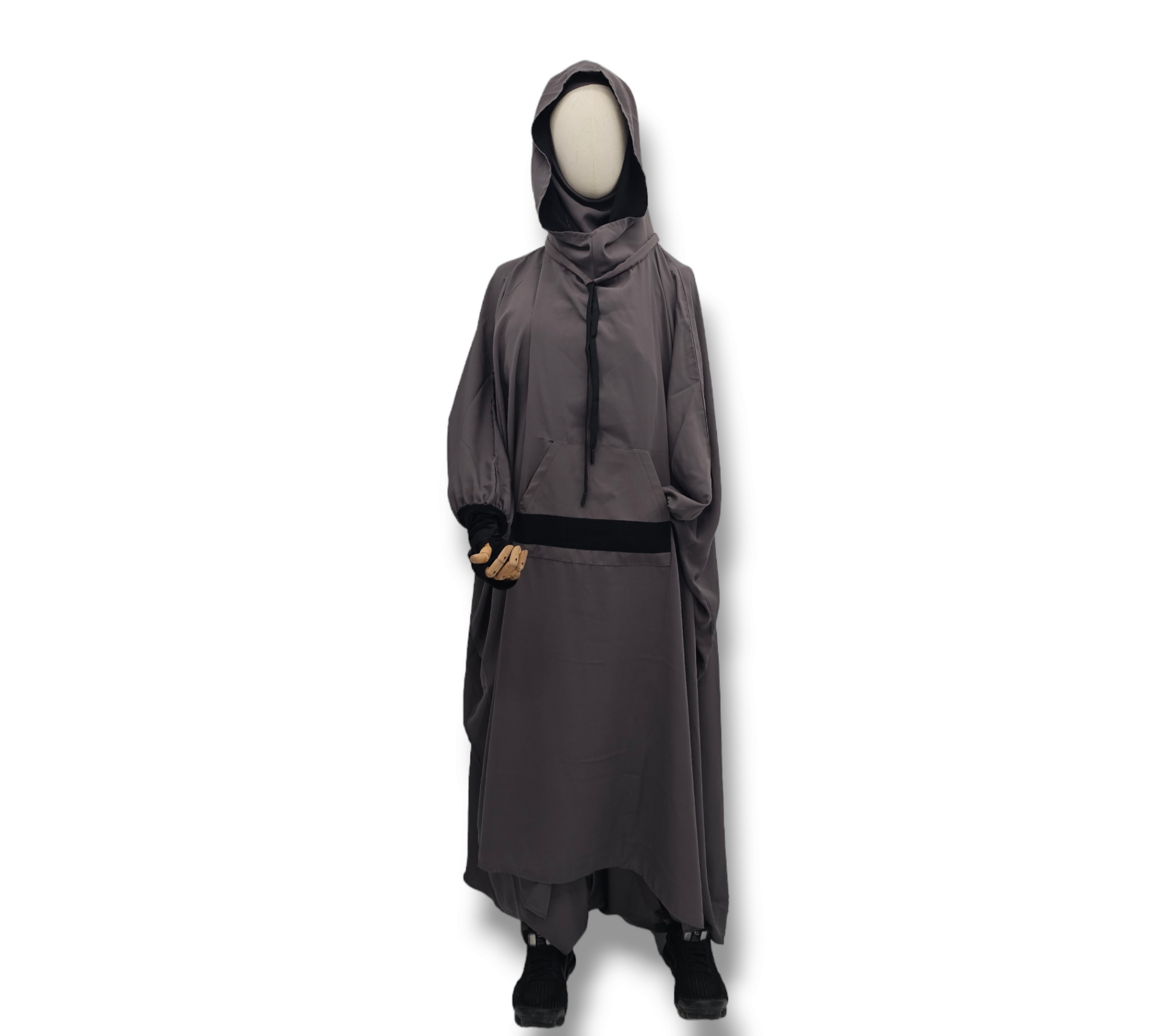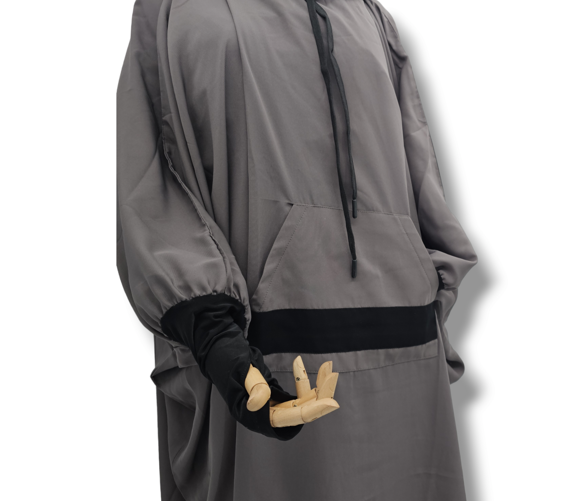 Stay comfortable and stylish during workouts with this 2-piece jilbab. The integrated hood and Lycra sleeves provide great coverage, while the saurel bottoms allow for maximum movement. The top also features a convenient kangaroo pocket to store your essentials. Made with lightweight wool peach material, this jilbab is perfect for all your athletic activities.