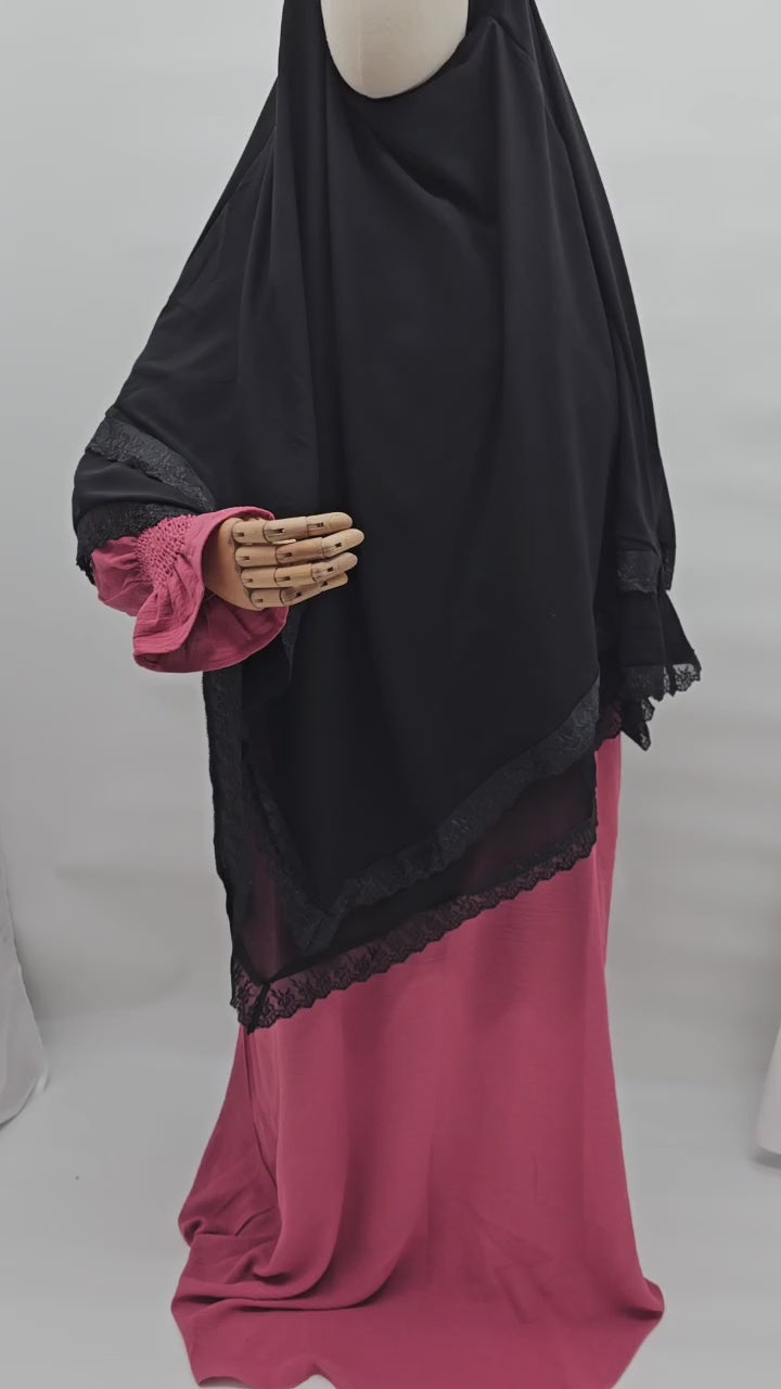 Double layer Diamond Khimar with Lace