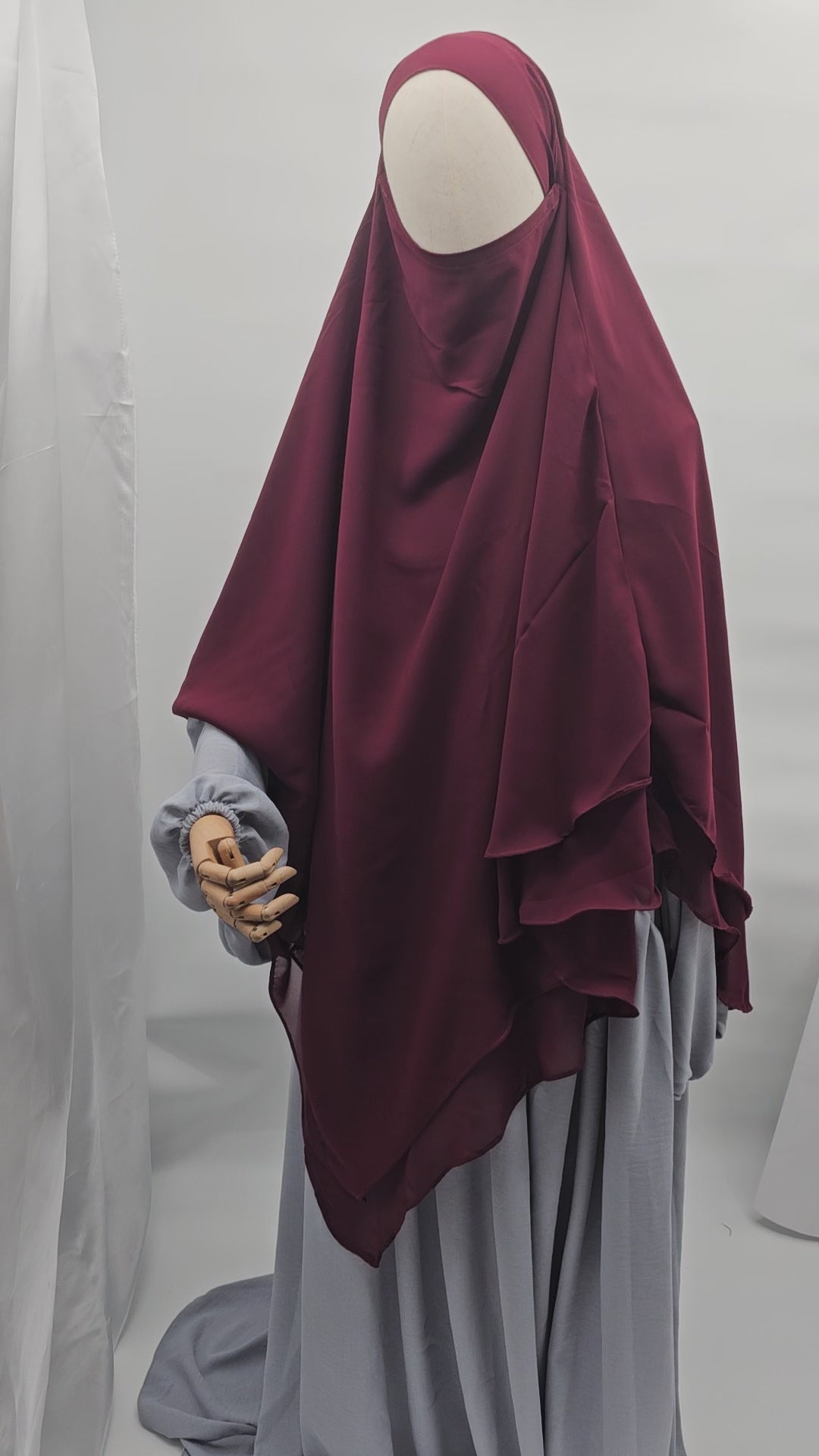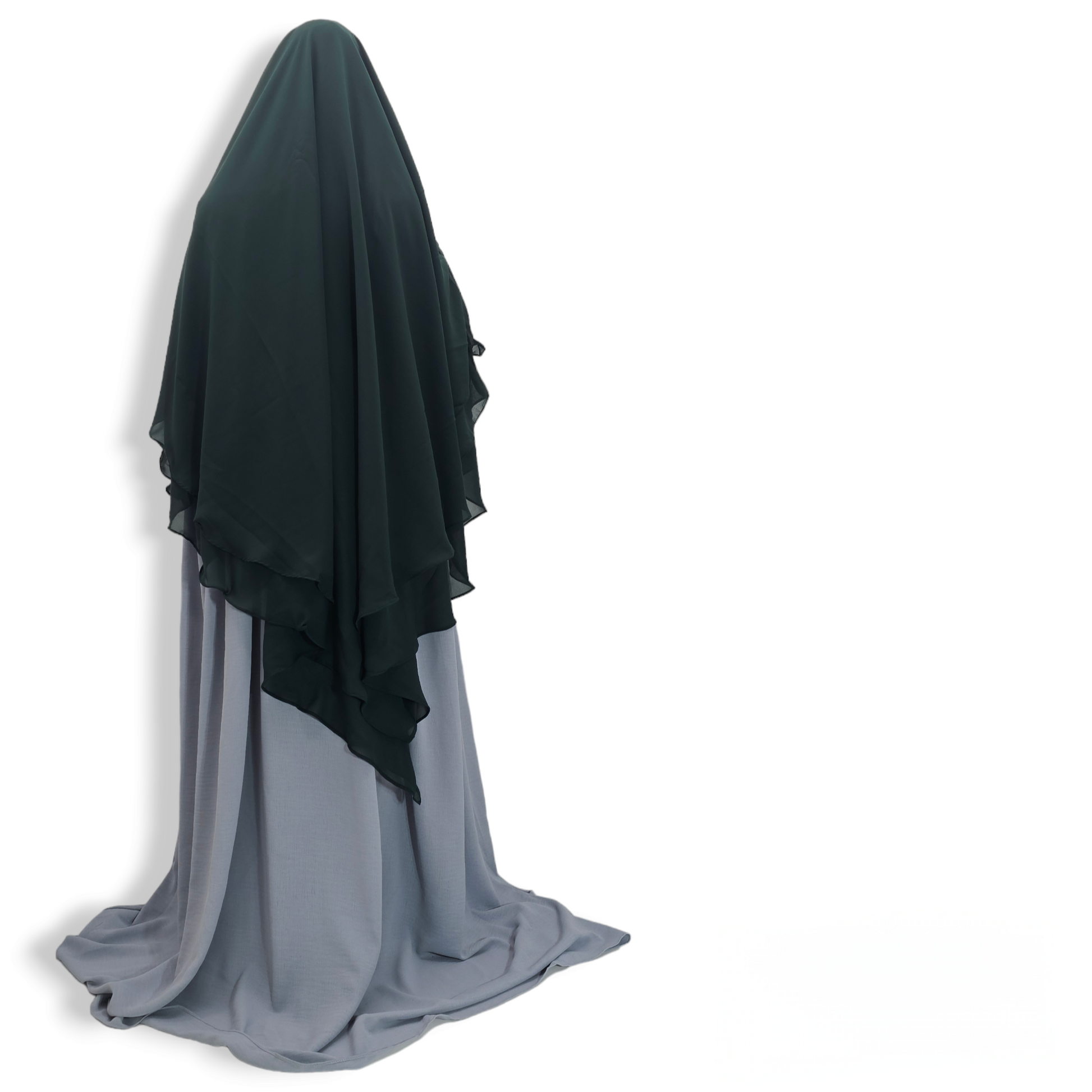 Experience the comfort and elegance of our Double Layer Khimar made of wool chiffon. Its soft feel and full coverage design make it perfect for any occasion. The tie back adds a touch of princess-like charm, making you look and feel your best. Stay stylish and modest with this essential piece.