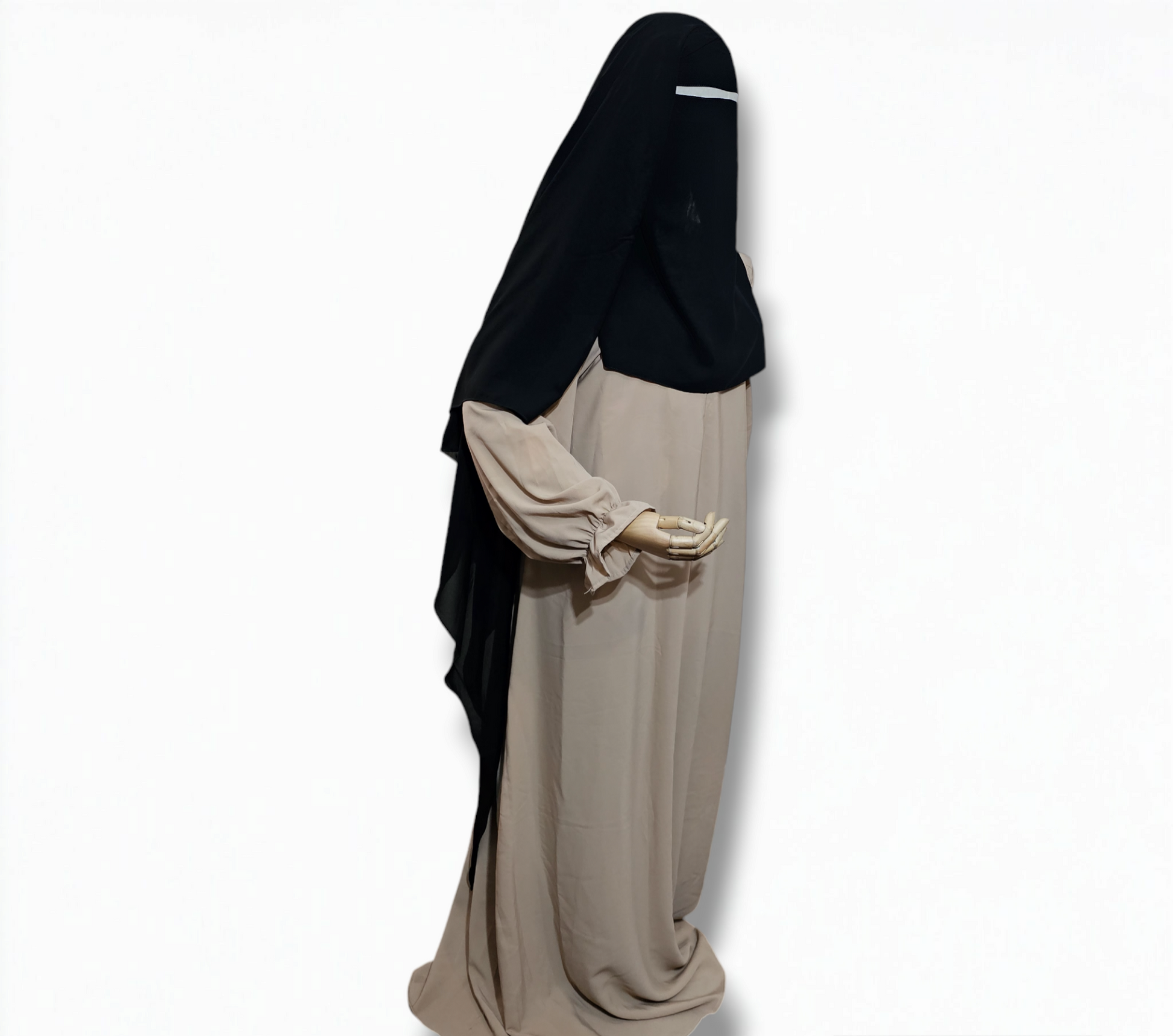 This triple layer diamond niqab flows elegantly like a waterfall with a diamond cut design, making you shine like a true worshipper of Allah. The back features two layers and an extra long length of 59in/150cm, perfect for women 5ft and above. Embrace your beauty and faith with this stunning niqab.